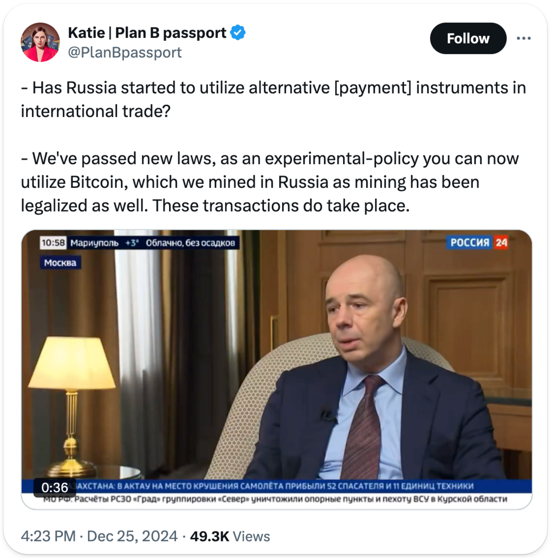 In an interview with Russia 24 TV, Russian Finance Minister Anton Siluanov confirmed that its companies are now using bitcoin as a tool to evade Western sanctions in global trade.