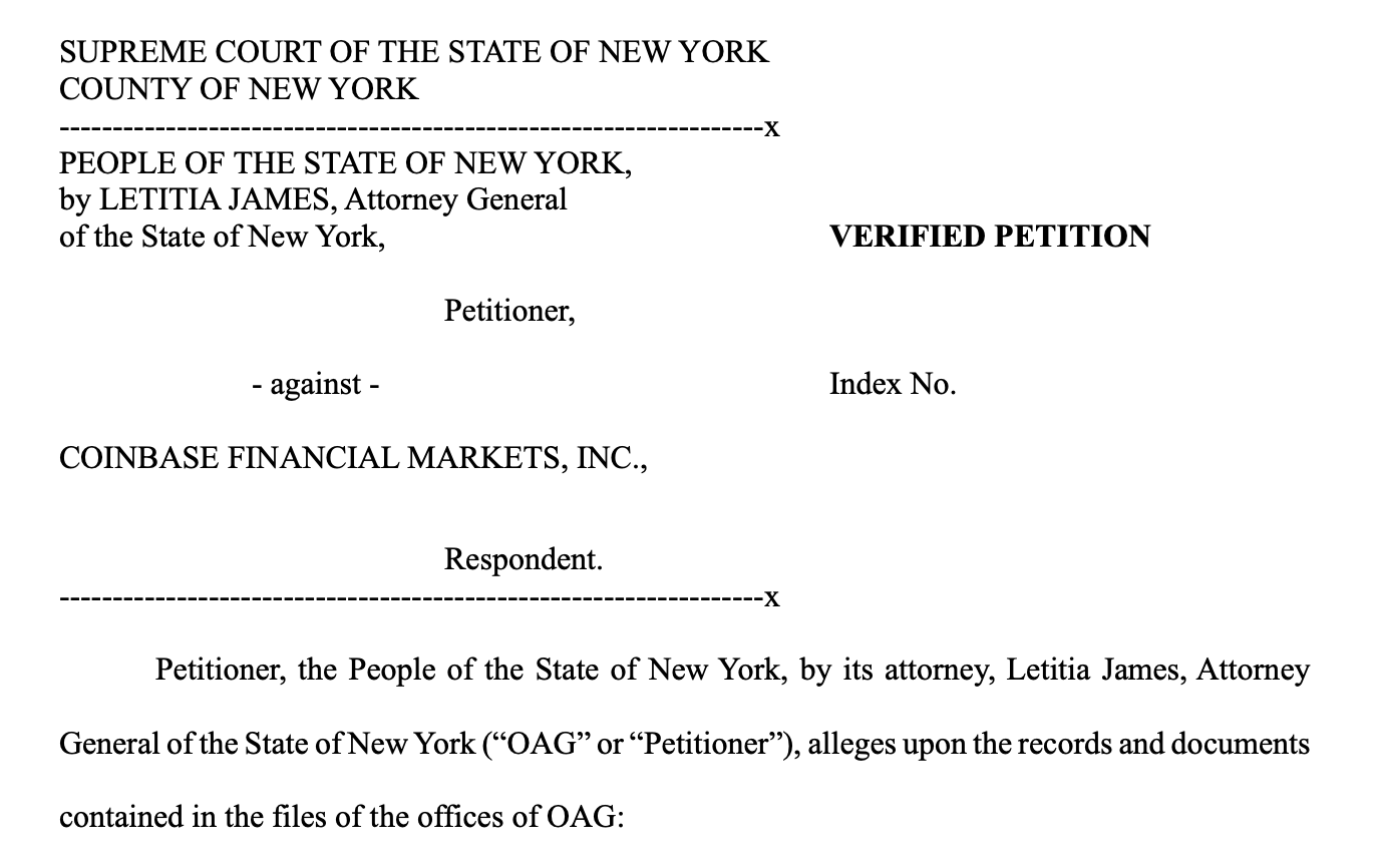 New York AG Sues Coinbase and Gemini, Classifies Prediction Markets as Illegal Gambling Operations