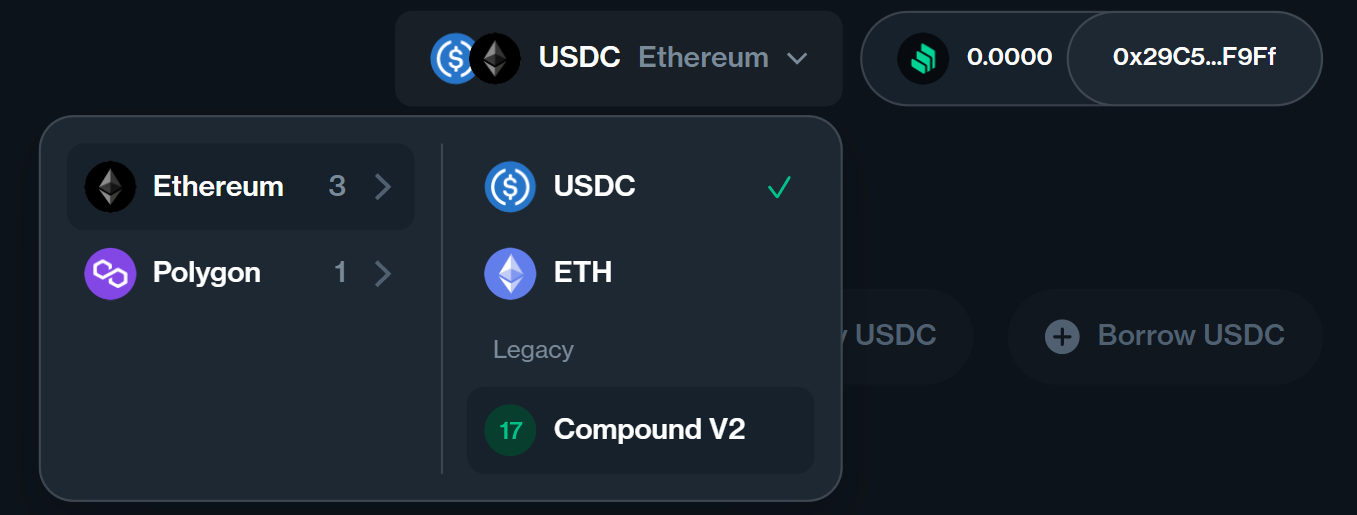 Accordingly, the first deployment of Compound V3 now lets users borrow the USDC stablecoin against deposits of ETH, WBTC, UNI, LINK, or COMP collateral. However, users that still prefer the V2 system can still readily navigate to it using the Compound website.