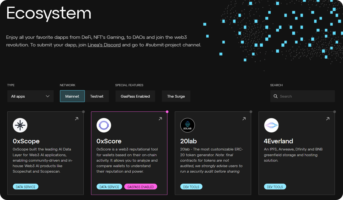 The Linea app ecosystem features more than 100 projects today. Some of the top experiences to explore here include: