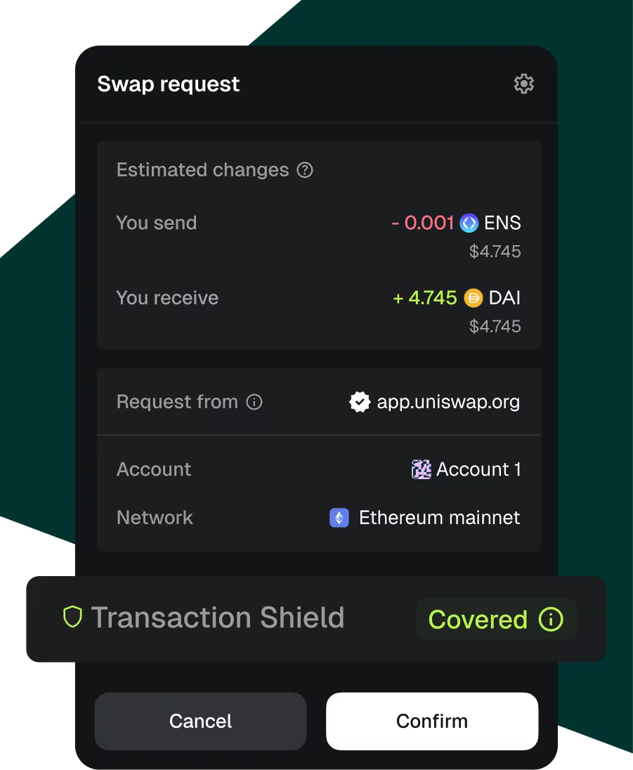 Another option to consider here is MetaMask's Transaction Shield. It's a paid subscription service ($9.99/month or $99/year) providing up to $10,000 a month in coverage for losses on qualifying transactions like DeFi swaps. However, keep in mind this service doesn't cover losses from compromised recovery phrases, protocol hacks, or trading losses.