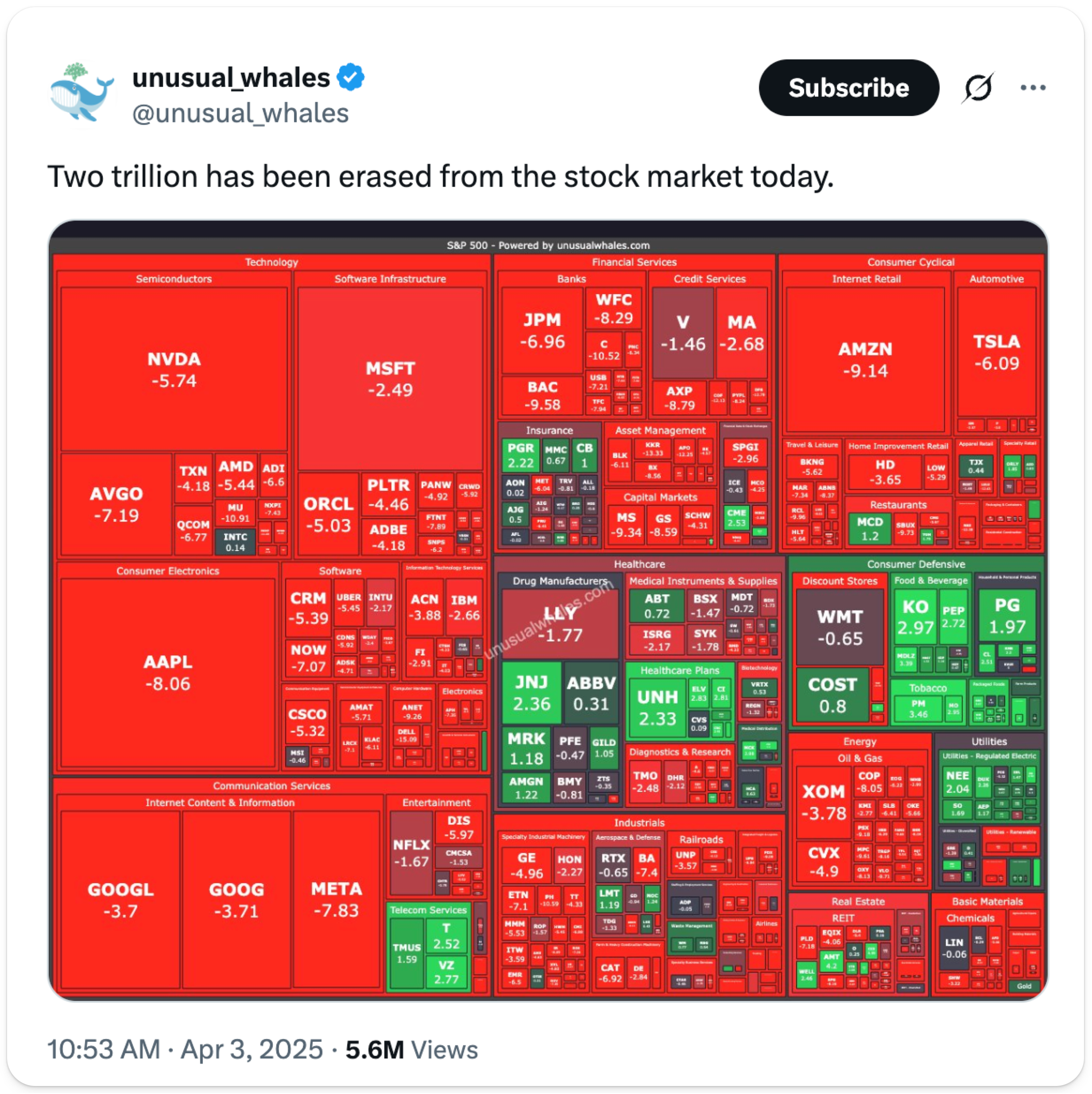Crypto markets took a sharp hit this week after President Trump unveiled sweeping “Liberation Day” tariffs, triggering a wave of risk-off sentiment across global financial markets.