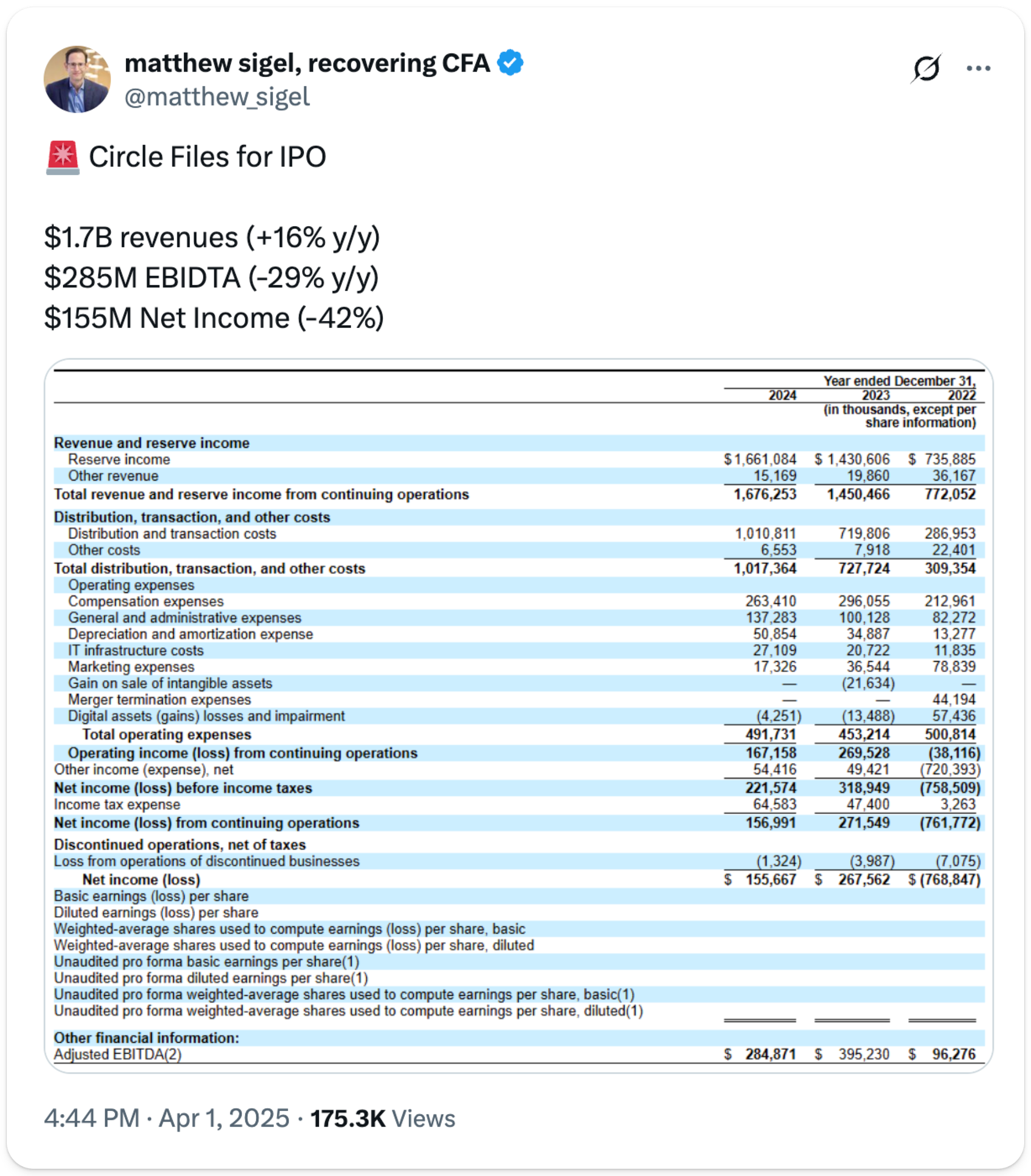 Jeremy Allaire framed the IPO as a move to “operate with the greatest transparency and accountability possible,” noting USDC has facilitated over $25 trillion in onchain transactions since its 2018 launch. While details like share count and pricing remain under wraps, Circle’s financials show a bounce from a $768M net loss in 2022 to $155M in net income last year.