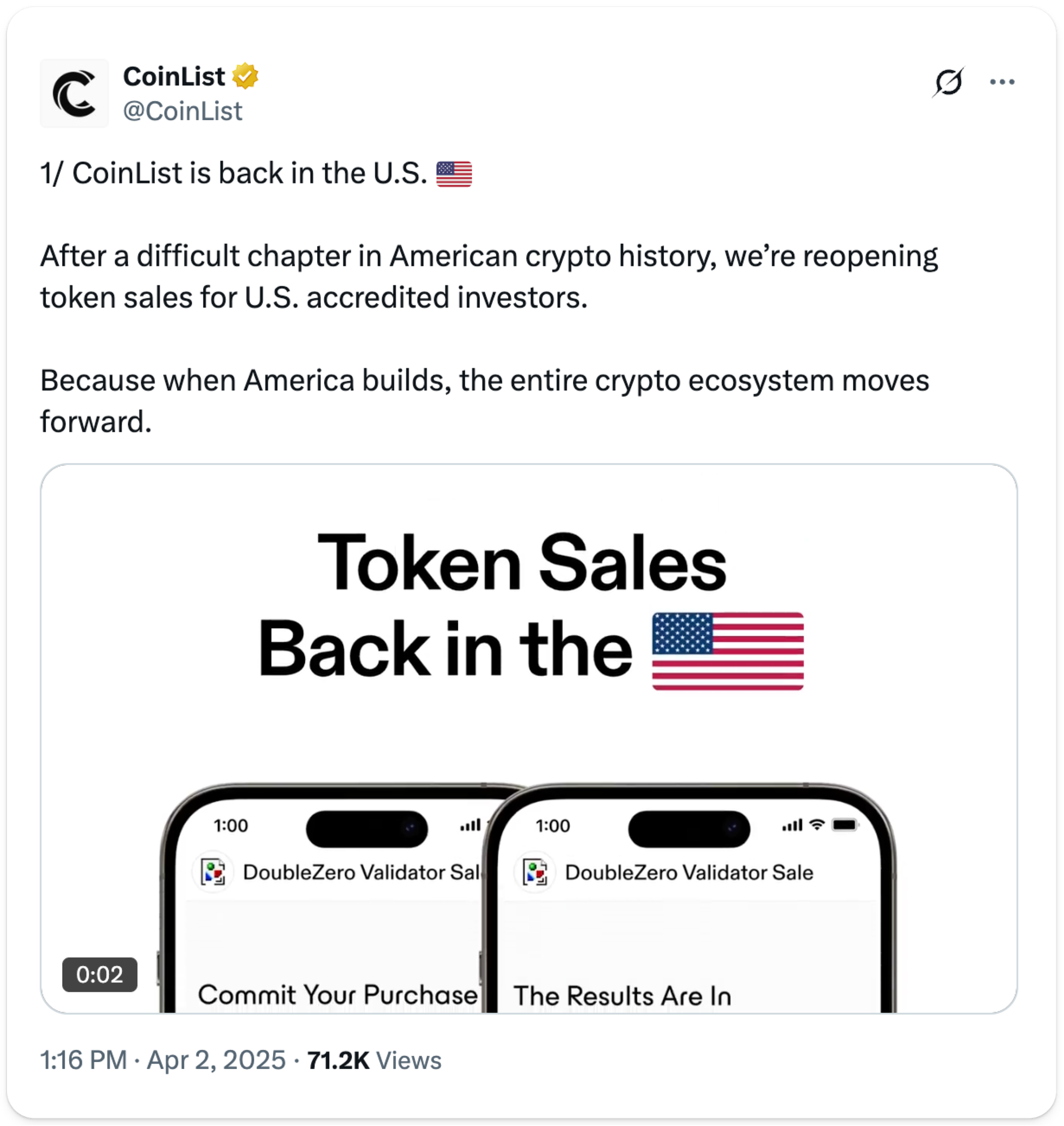 After a five-year departure, the token launch platform CoinList is back in the U.S. markets and bull-posting the future of the industry under Trump's crypto-friendly administration.