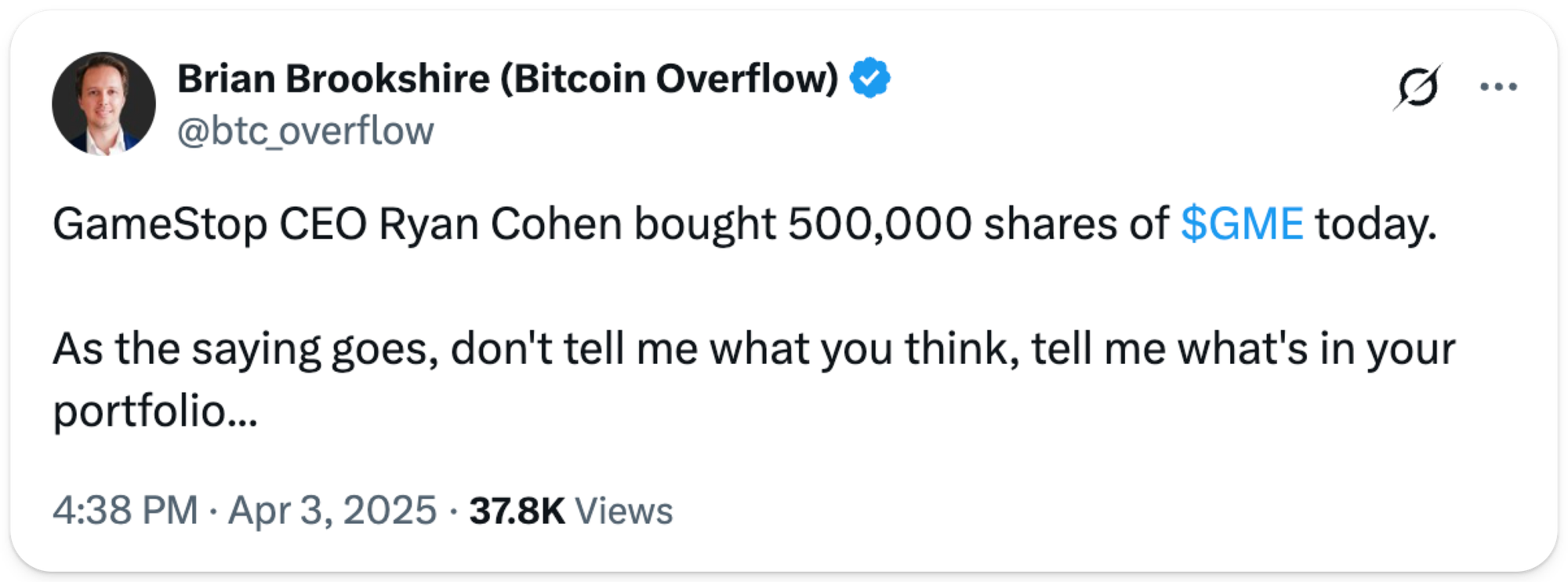 News of the offering led to a substantial sell-off last week, but stock prices managed to buck market trends and surge this week as GME Chairman Ryan Cohen announced he was increasing his stake in the company and had purchased 500,000 shares on the open market.