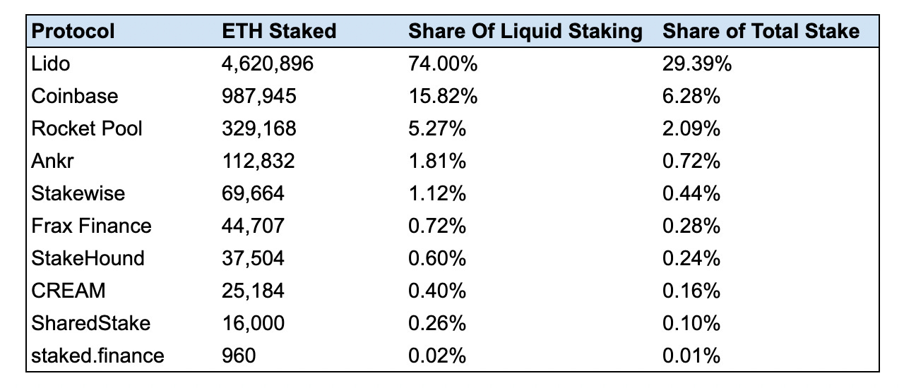 Before we dive into how staking will change and who will capture market-share post-Shanghai, let’s take a look at the liquid staking landscape today.