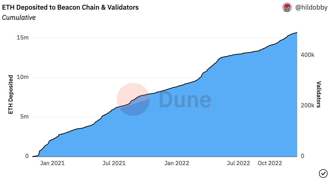 A major catalyst that is set to accelerate this stake rate is the Shanghai network upgrade, which will de-risk staking by enabling users to withdraw their deposits. This is likely to lead to millions of ETH being staked in the months following its expected implementation date of March-April 2023.