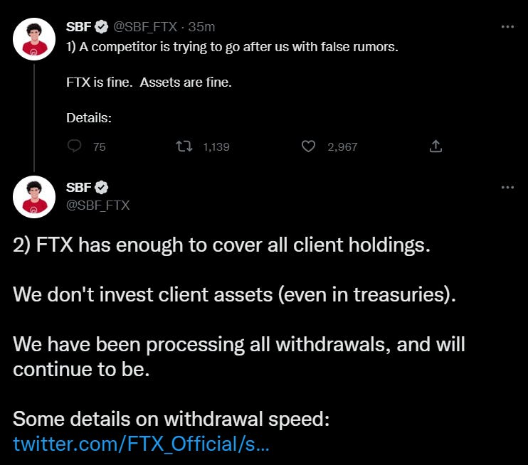 The crypto community didn’t think much of Sam’s public posturing, especially after the interview was followed by an on-air sit-down with ABC’s George Stephanopoulos, a lengthy Twitter Spaces call, and an extensive Bloomberg feature.
