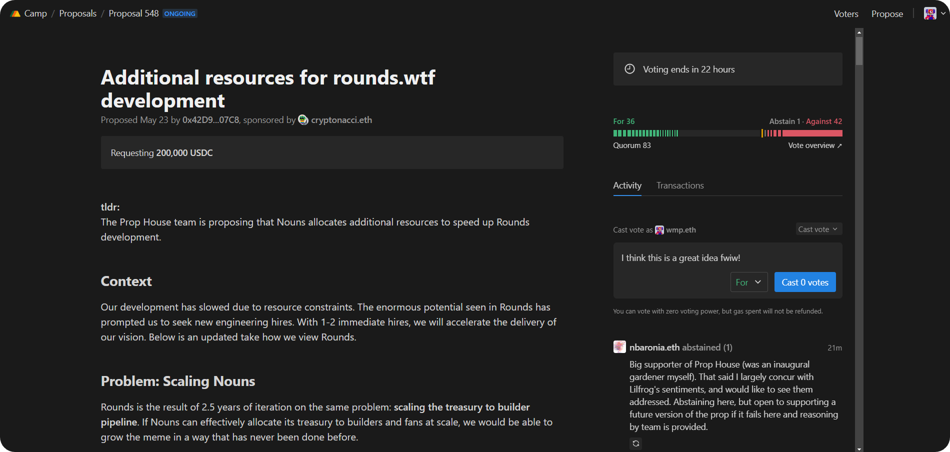 Nouns Camp is a Nouns DAO governance client.