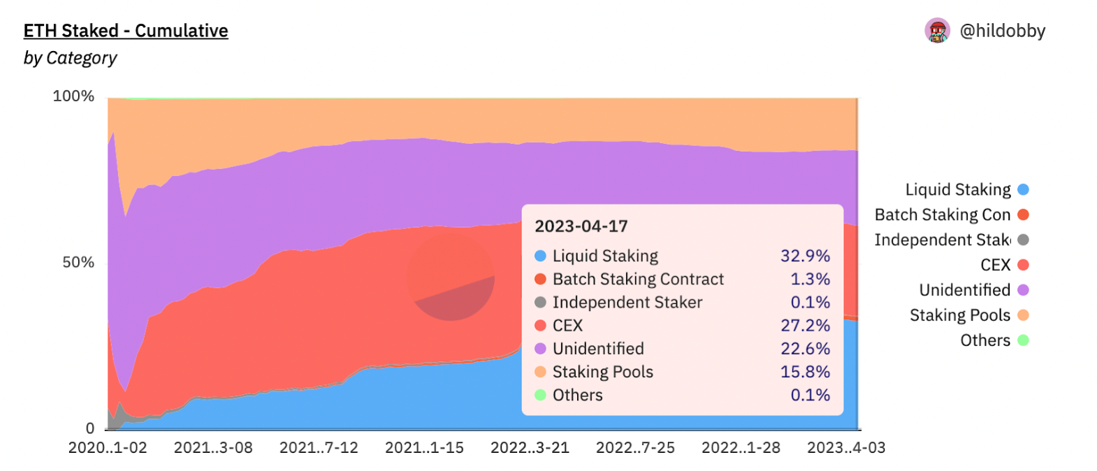 Staking on Ethereum’s Beacon Chain is now a two-way door. Undeniably, Shapella was a massive derisking event for many categories of stakers. For the first time since the inception of the Beacon Chain, staking-as-a-service and solo staking solutions are viable options for ETH holders looking to retain liquidity of stake.