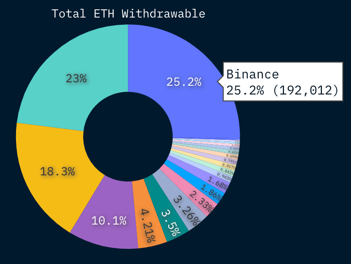 Binance, the recent target of numerous U.S.-based regulatory inquisitions and actions, has increased its share of the exit queue to 25.2%, stealing the top spot from Kraken, 23%, forced by SEC settlement to wind down U.S. staking operations. Fellow CEX