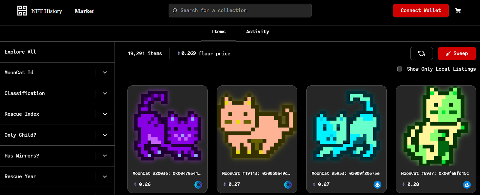 - MoonCatRescue — Launched in August 2017, the MoonCats project was the first generative art project on Ethereum.