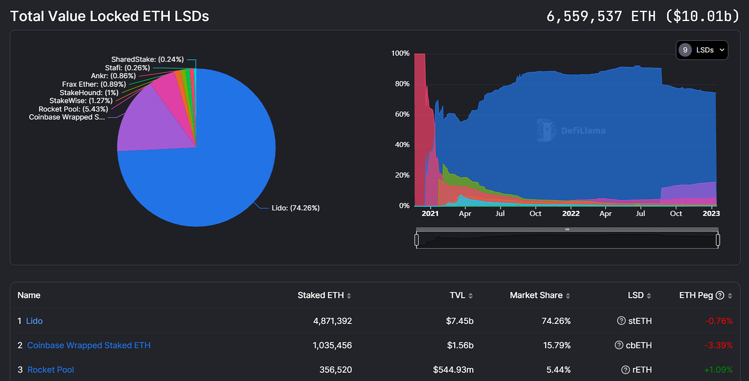 That said, DeFiLlama recently launched an LSD dashboard so DeFi users can readily track LSD activity and the growth of the leading derivatives compared to one another.