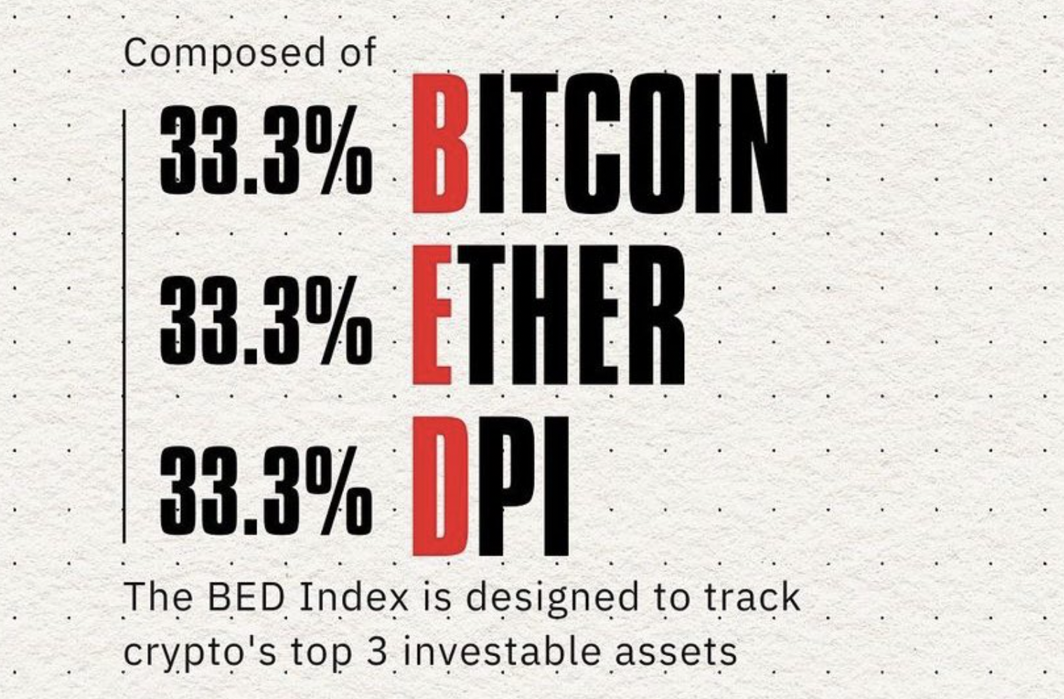We believe BED is one of the easiest way for people to get exposure to the major themes in crypto: digital gold (BTC), programmable money (ETH), and decentralized finance (DPI).