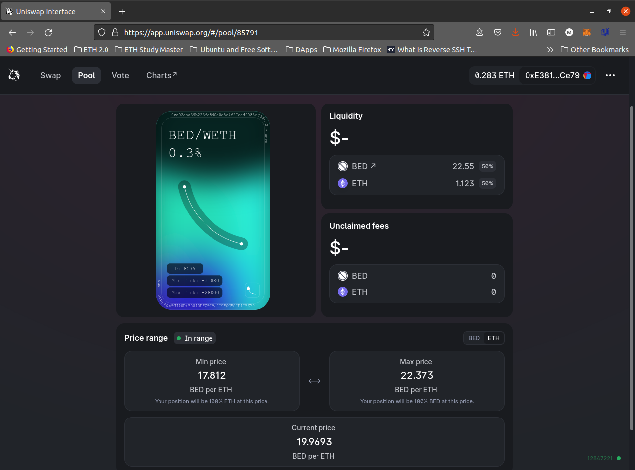 - Provide liquidity to BED/ETH pair on Uniswap V3 (advanced)