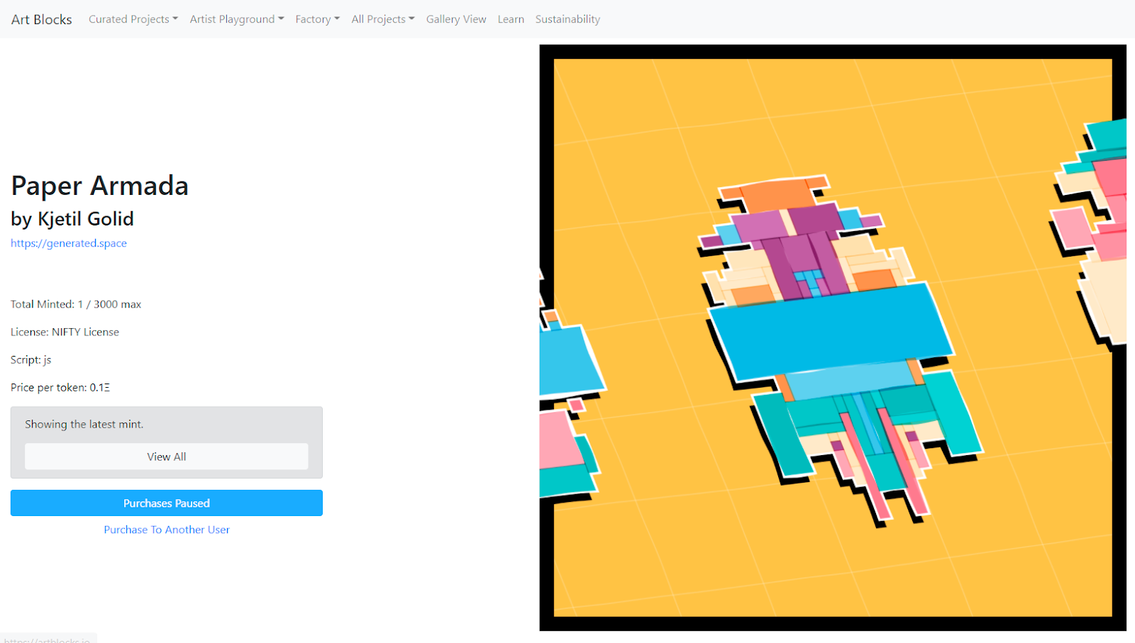 In the meantime while the community waits for Series 3, we still have Playground projects we can mint from, like pxlq’s Heiroglyphs release (near ~600 of 1,250 mints currently) or Kjetil Golid’s first Playground project, Paper Armada, which drops at 5PM UTC tomorrow, Mar. 30th. In this particular series, collectors will ultimately mint 3,000 NFTs for 0.1 ETH each (not including gas prices).