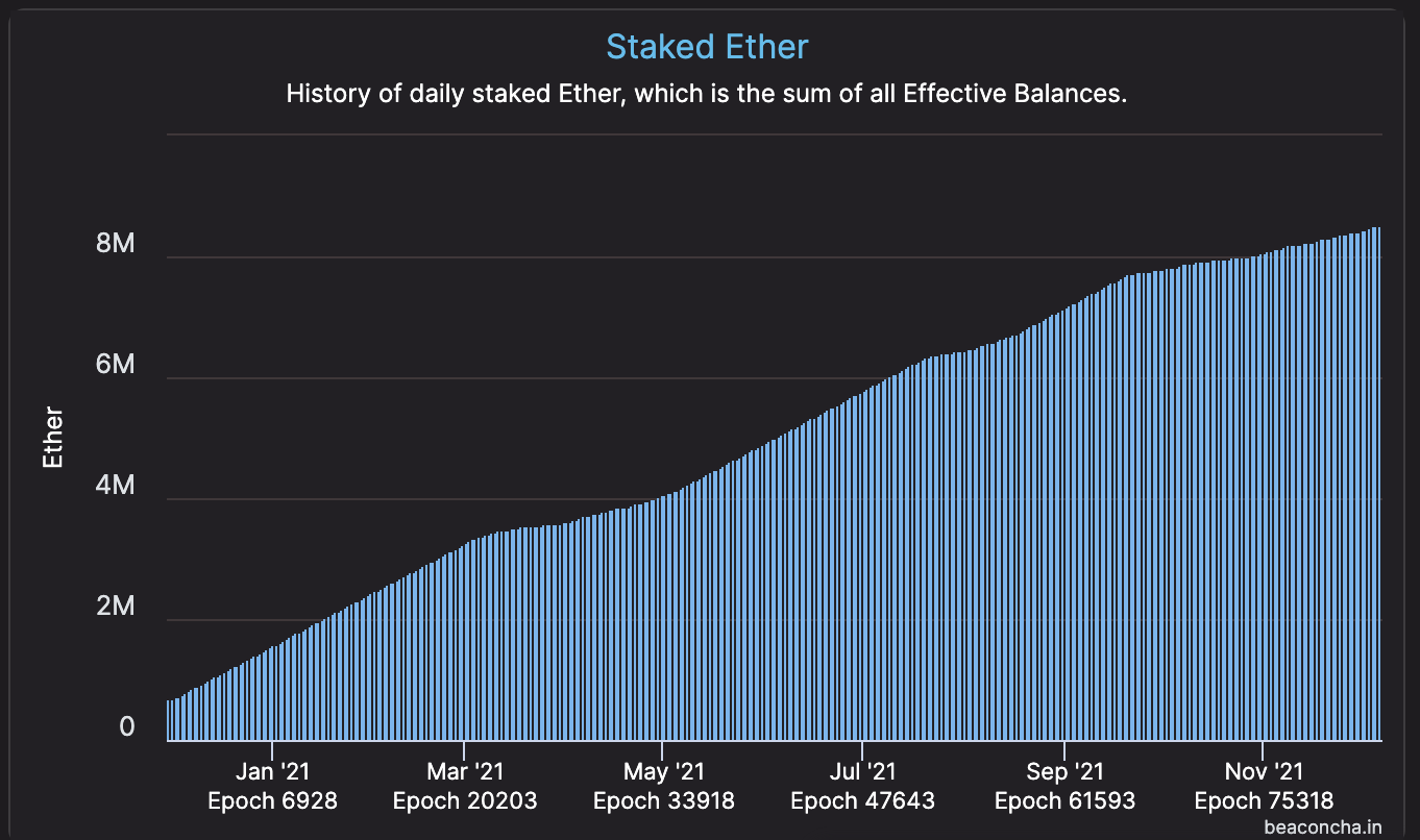 Today, there are more than 8.5M ETH staked in the Eth2 Beacon Chain, and that’s just after one year of this new chain being in existence.