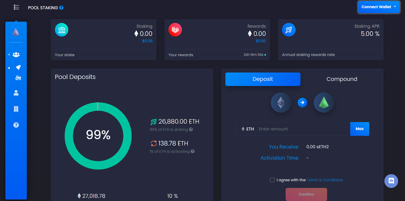 For StakeWise Solo, users supply a minimum of 32 ETH at which point StakeWise’s infrastructure and tools handle the validator work on your behalf. On the flip side is StakeWise Pool, which pools ETH from many users to create validators and has no minimum deposit amount.