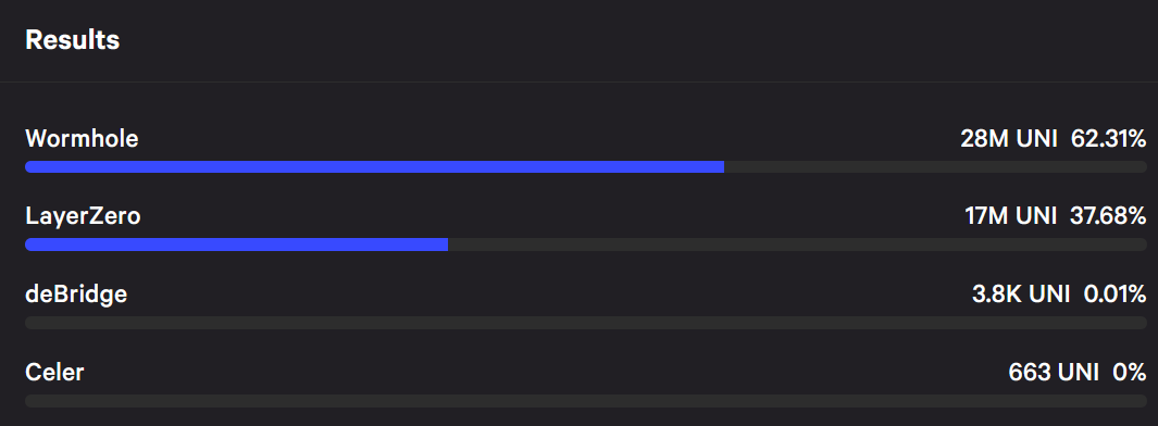 62% of UNI holders voted in favor of Wormhole bridge, with 37% going to competitor bridge