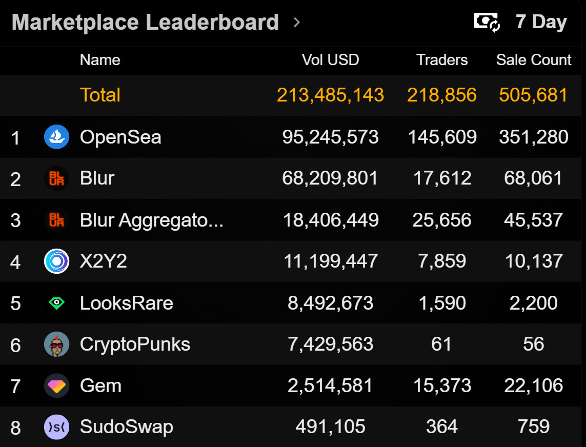 For the second week in a rowOpenSea has maintained a significant trading volume lead over Blur, whose $BLUR token launch is now less than a fortnight away. Is anticipation of the long-awaited airdrop running out of steam, or should we expect