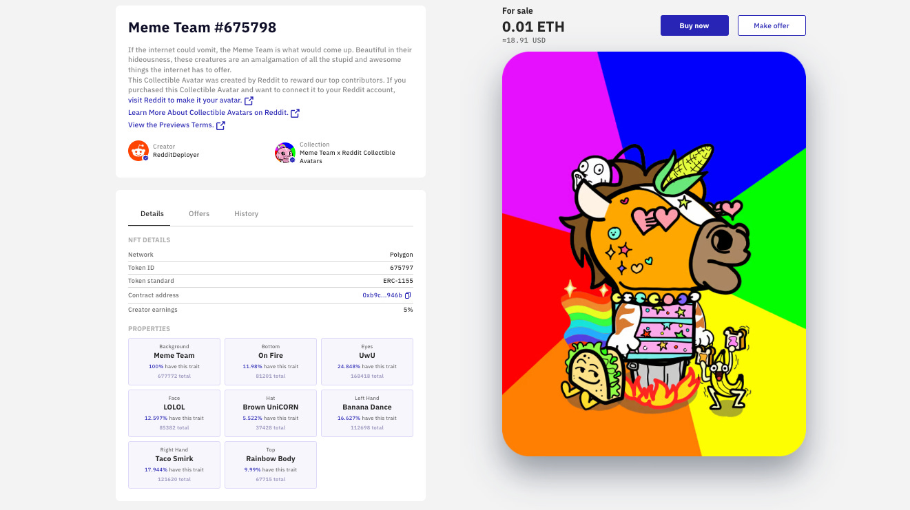 For the full product launch this week, Kraken NFT added support for thePolygon network, so now you can manage your Ethereum, Solana, and Polygon NFTs all from your same Kraken account. To welcome Polygon in with a bang, the platform also just added support for the Reddit Avatars collection, which has exploded in popularity since last fall.