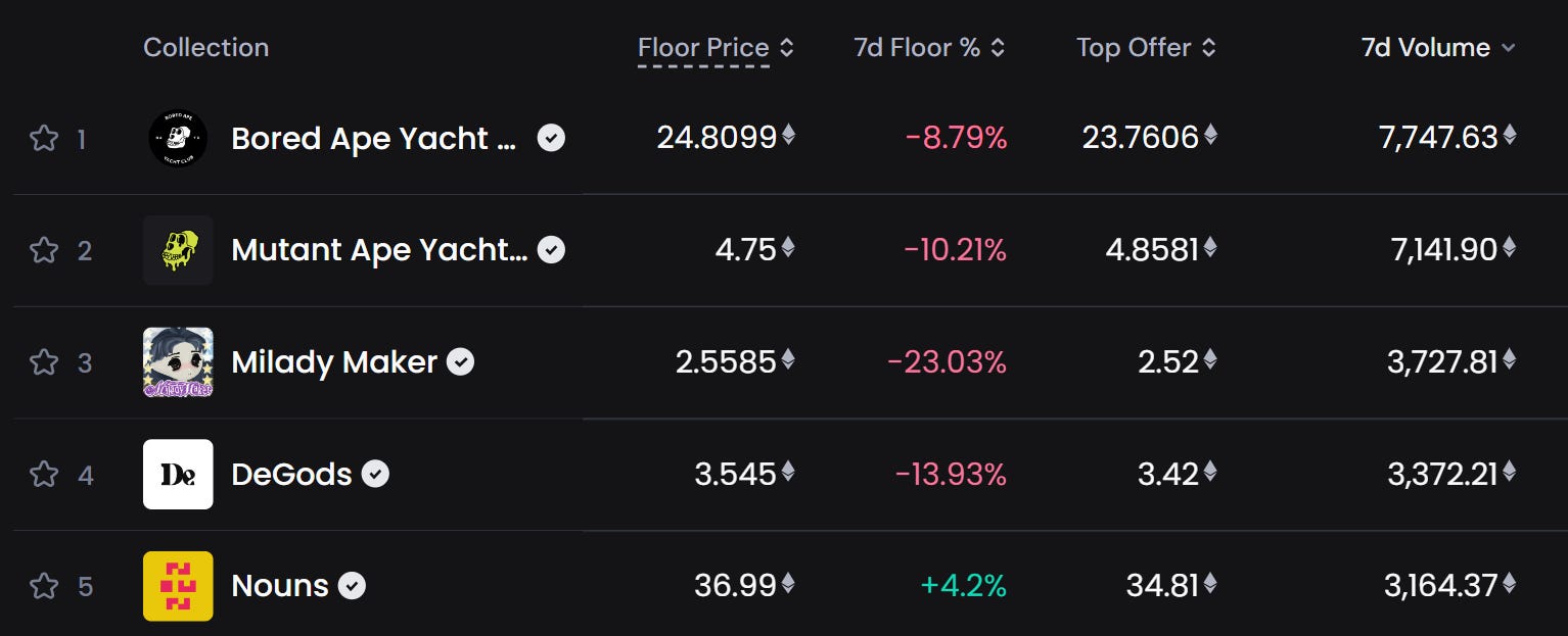 Over the past week, the floor-based market cap of the NFT space slid from 8.56 million ETH to 7.99 million ETH for a 6.65% drop ⤵️