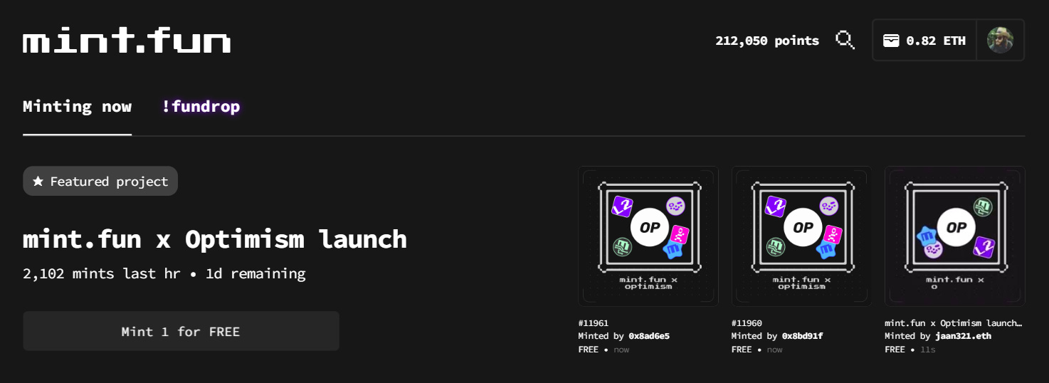 First launched in June 2022, mint.fun is an NFT platform that aggregates active mints into a one-stop discovery and minting hub.