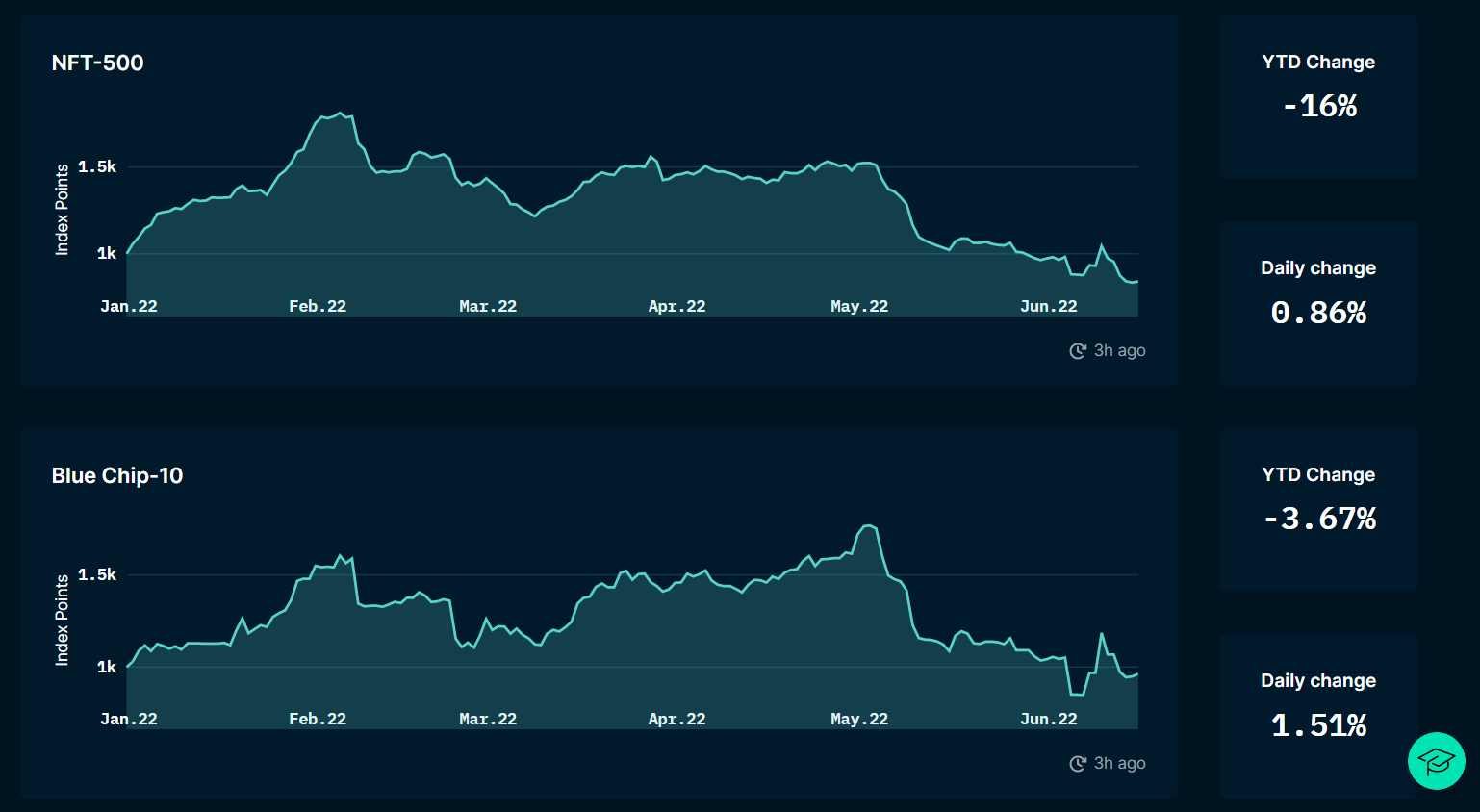 - NFT-500 — tracks the performance of the top 500 NFT collections
