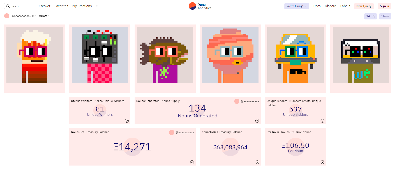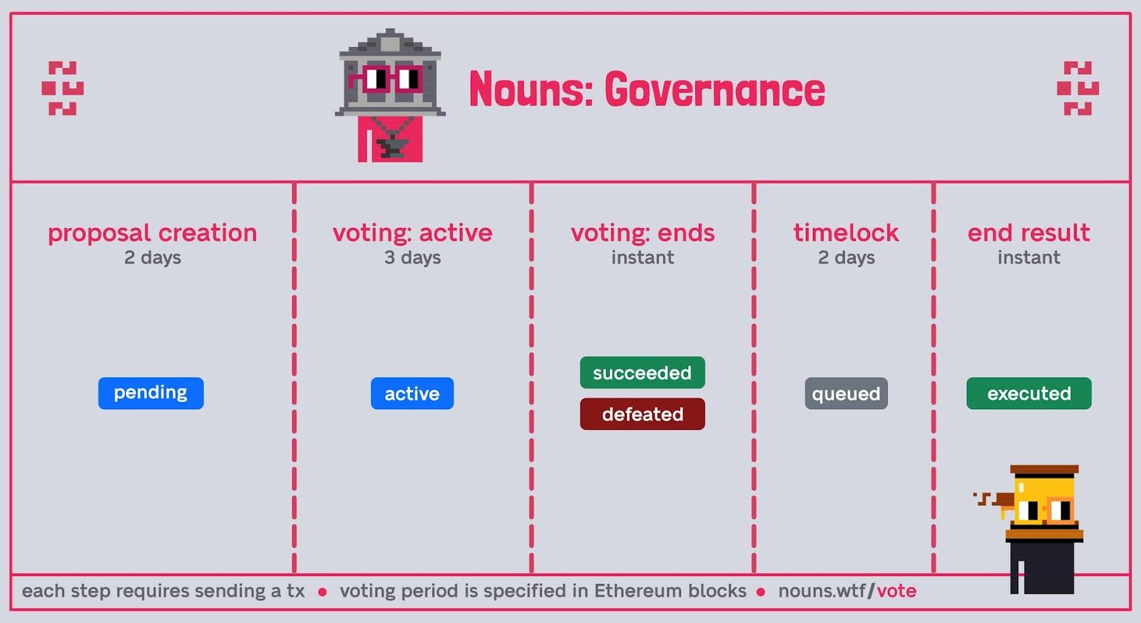 - Check out the Nouns DAO Governance dashboard to see the project’s current and historical proposals
