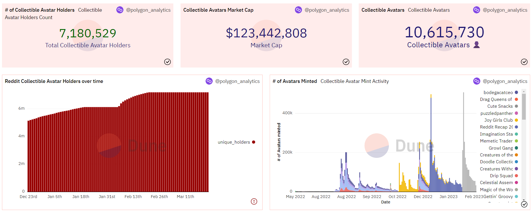 That’s because so far more than 10.6M of these NFTs have been collected across +7M holders, and the market cap for these collectibles is currently over $123M USD. That’s already really impressive stats, and the arrival of a native Reddit NFT marketplace could catalyze another big surge in these numbers as more options become available to Reddit’s community.