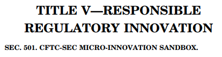 DAMCA will require the CFTC and SEC to establish a "Micro-Innovation Sandbox" within 360 days of its enactment to "enable 10 eligible firms to test innovative activities within the United States," subject to applicable Federal and State securities and commodities laws.