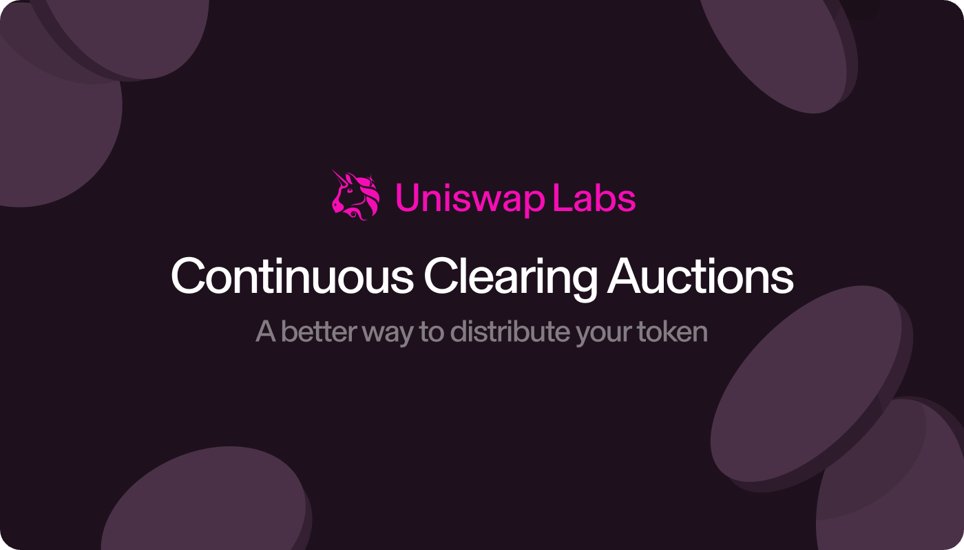 The Uniswap Continuous Clearing Auction is designed for fair price discovery and onchain liquidity bootstrapping at TGE. Tokens are sold continuously over time, eliminating sniping — and proceeds can seed a Uniswap v4 pool for Day 1 liquidity.