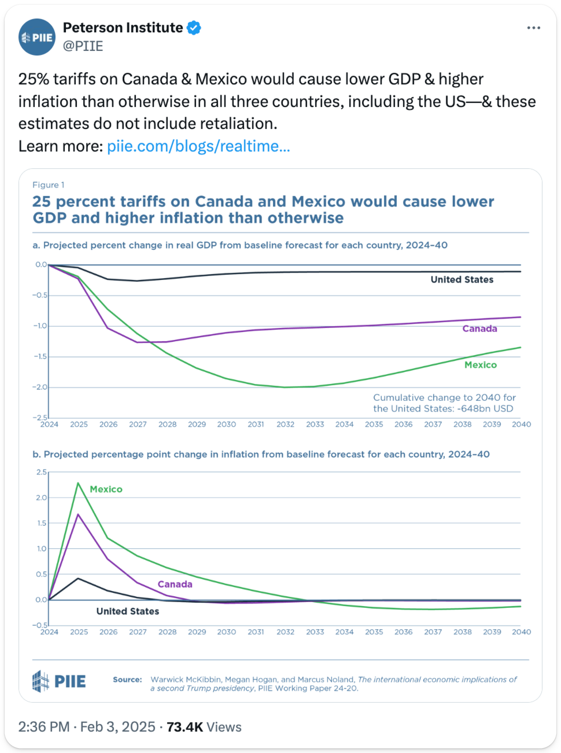 Trump's recent announcement that he planned to add an additional 25% tariff on imports into the U.S. from Canada and Mexico has triggered market pandemonium as investors bet on whether he's playing 5D chess or is in over his head. Mexico and Canada both responded by implementing tariffs on goods imported from the U.S., but Trump later agreed to 30-day pause on any action. The damage was already done in crypto – prices dropped across the board, with