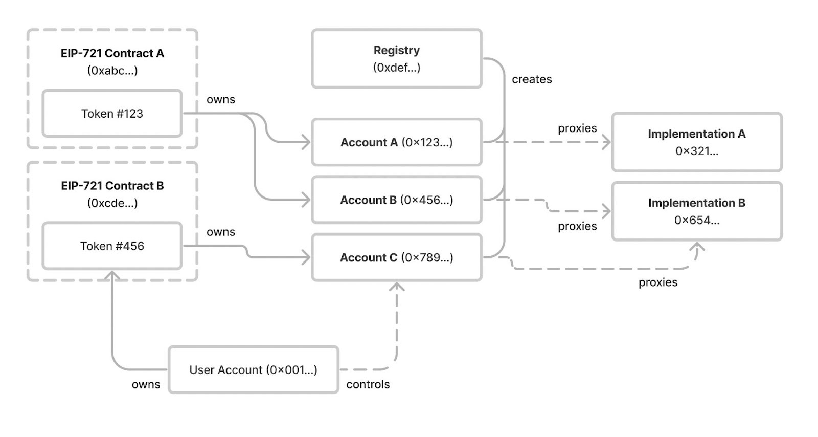 Accordingly, ERC-6551 addresses this by granting each ERC-721 token the full capabilities of an Ethereum account, while maintaining compatibility with existing ERC-721 contracts. This is done by deploying unique smart contract accounts, termed "token bound accounts,” for each ERC-721 token via a permissionless registry.