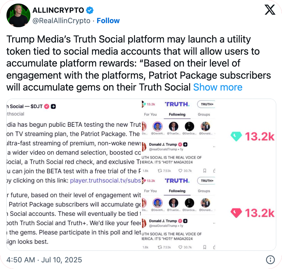 4️⃣ Truth Social Explores Token Rewards