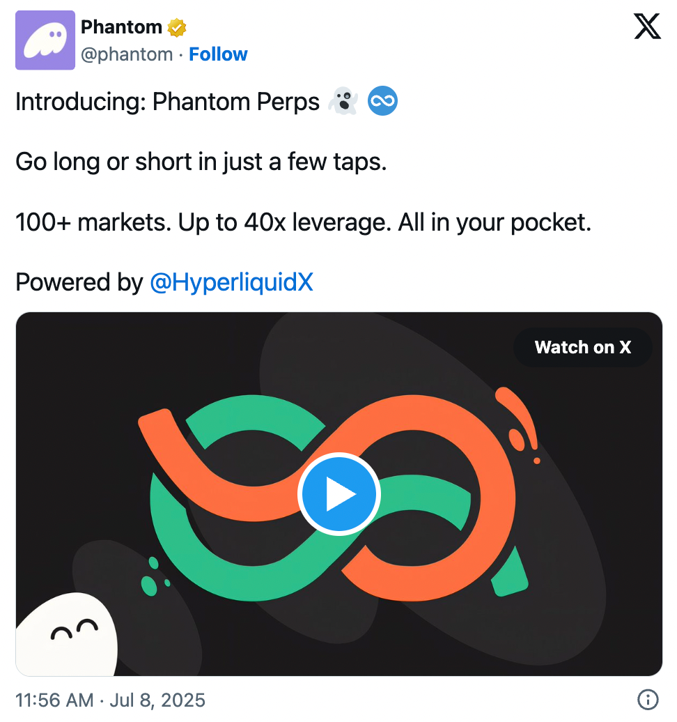 Phantom's move came amid a massive week for perpetuals, with Hyperliquid starting a rush for pre-market trading of Pump.fun's upcoming $PUMP token, which quickly spurred similar pre-market launches from