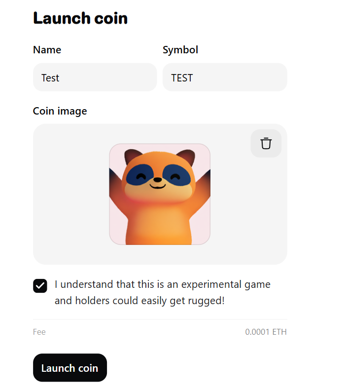 First, you'll need some ETH on Base to get started. With that ready, head to the rug.fun platform and sign in with your wallet. Then press the "Launch" button in the upper right side of the homepage, after which you'll be taken to the creator interface like so: