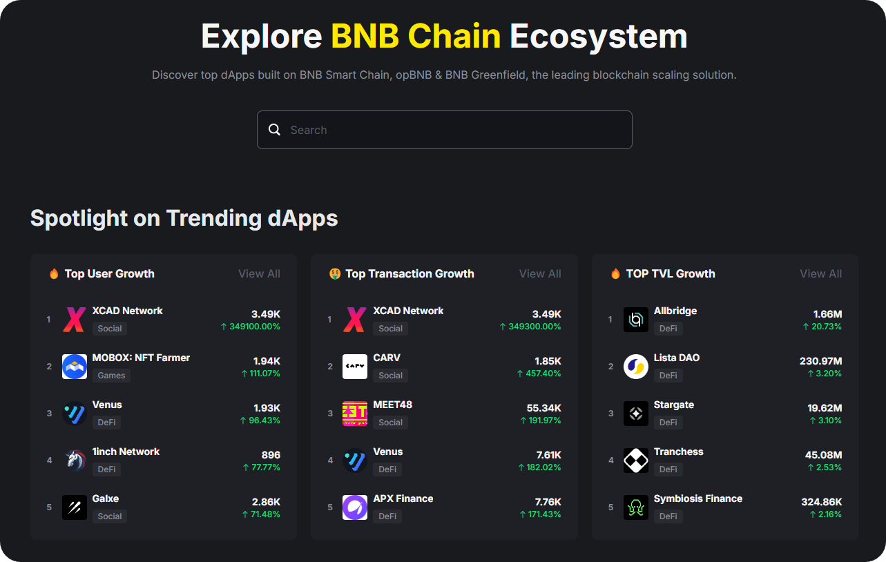 The BNB Chain app ecosystem is among the most sprawling in the cryptoeconomy, boasting over 800 projects today. Some of the top apps to explore here include: