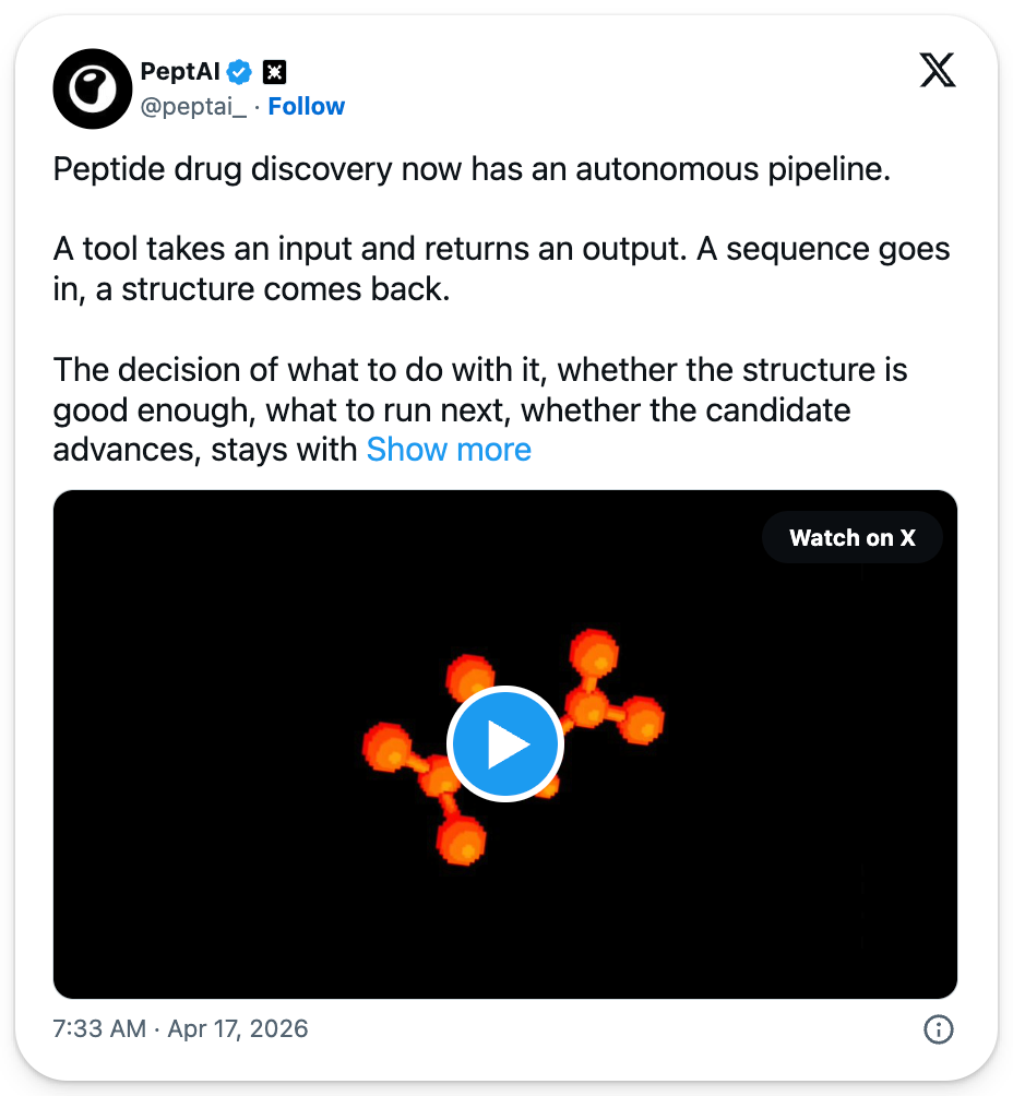 It’s the token-governed platform routing capital to specialized research DAOs through community governance. Over the past few months, it has pushed just as hard on the agentic science side. PeptAI’s success with OX2R-004 is the latest proof point, but not the only one. In January, the team released BIOS, an AI scientist that coordinates specialized agents for literature search and computational analysis.