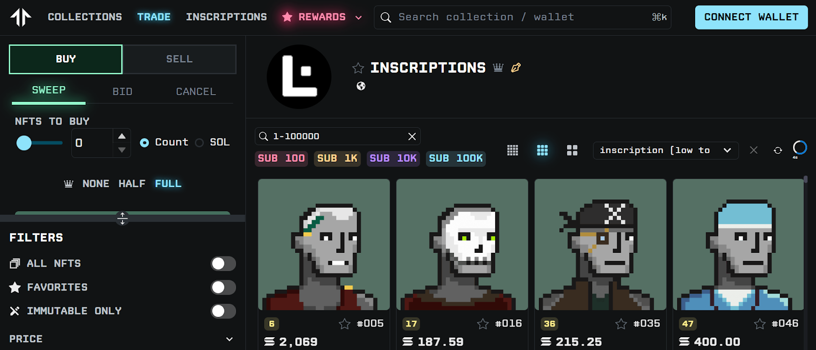 If you’re keen to keep following along with the Inscriptions craze in the weeks ahead, keep an eye on the top platforms that are facilitating them. I’ve already mentioned POLS Market on Polygon, and with regard to Ethereum there’s the main Ethscriptions marketplace for starters. On the Bitcoin side of things OKX has become popular for both BRC-20s and NFTs, and on Solana there’s Tensor, which is akin to Blur.