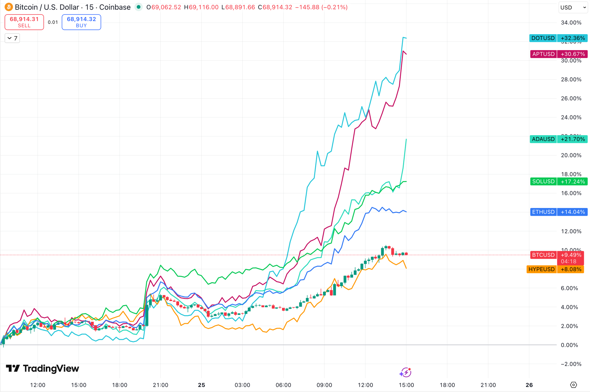 Hyperliquid (HYPE) lags the entire field.