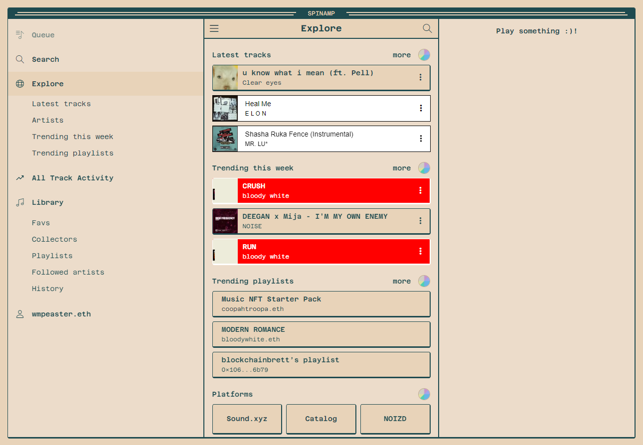 - J for “Jam” — The music NFT scene continues to gain traction, which makes web3 music players like Spinamp really convenient for enjoying and organizing playlists of your favorite songs.