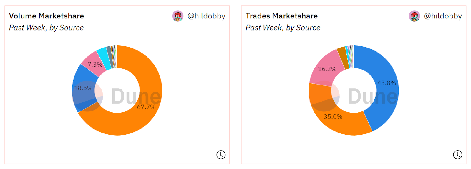 OpenSea Pro is gaining ground! Over the past week, the new-and-improved NFT marketplace aggregator saw its marketshare of 7D NFT trades rise from 9.3% to 16.2%, while Blur’s marketshare of trades dropped from 41.3% to 35% over the same span. Accordingly, OpenSea Pro is eating right into
