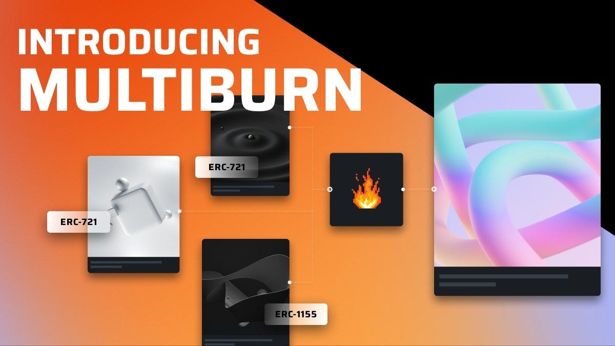 Manifold has unveiled Multiburn, a new resource that allows creators to require the burning of multiple distinct tokens for redeeming new NFTs. For context, previously with Manifold you could only burn one specific token to mint another. The enhanced functionality should lead to all sorts of new creative experiments around the NFT ecosystem, so keep an eye out for these explorations.
