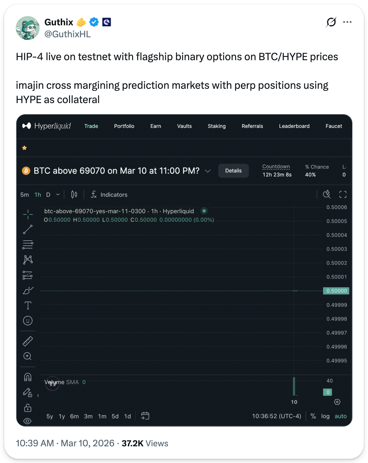 Current status: The first BTC/HYPE binary market went live on testnet last week, suggesting the mainnet rollout isn't far off now. Keep your eyes peeled for official news on the full release.
