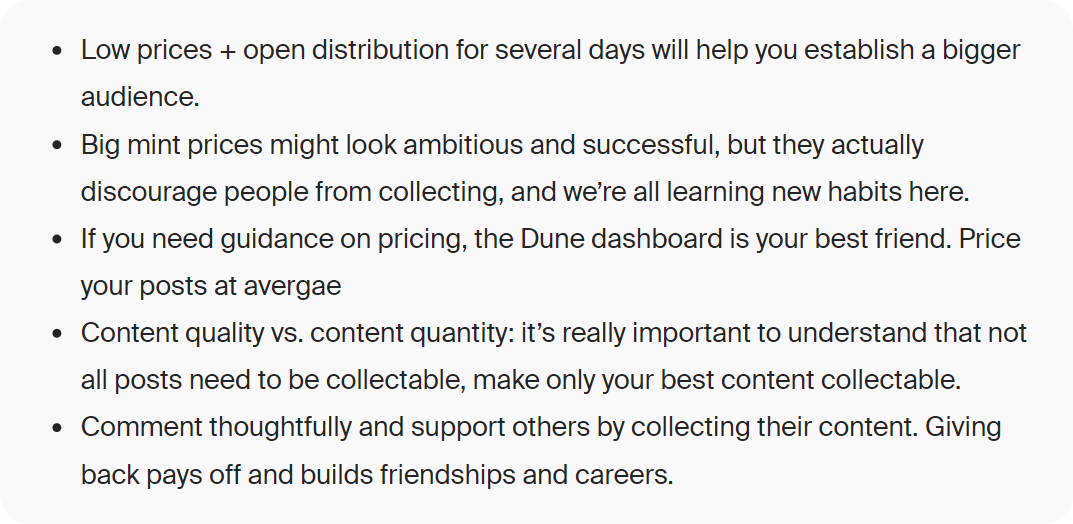 If you're not sure where to start, my former colleague María Paula recently wrote an excellent guide, Learning How to Monetize Sustainably, that walks through how to smartly approach releasing your content for $BONSAI on the Orb Social app. She recommends...