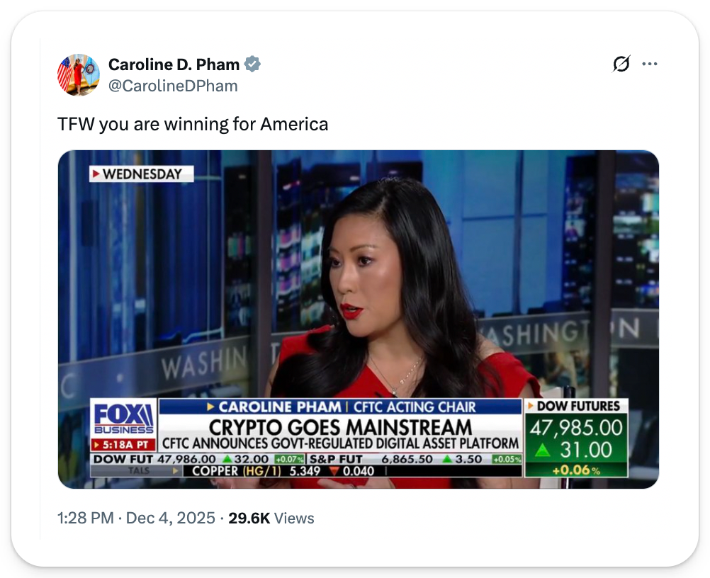 The industry has long pushed for constructive clarity that actually expands crypto access. Now, it appears the CFTC is delivering on that promise with its two latest announcements.
