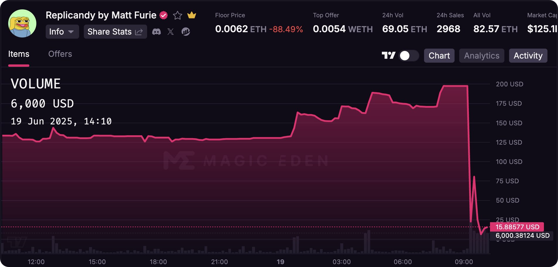 We saw the fallout from this compromise this week when the smart contract of Furie's latest Replicandly mint was commandeered and used to dump many thousands of dollars' worth of NFTs on the market. Shortly thereafter, Furie's older Peplicator collection was also attacked in this way.