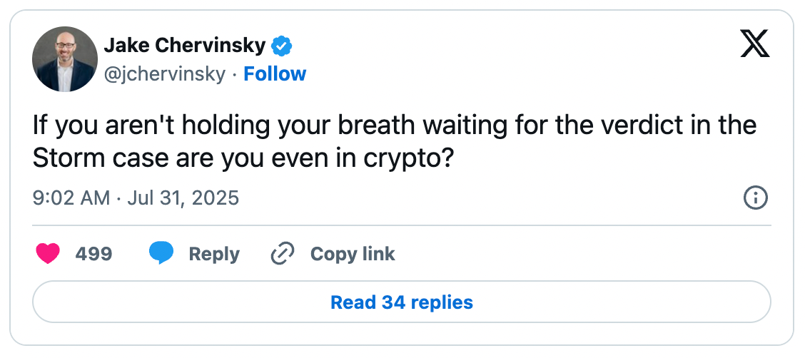 Roman Storm appeared in court this week for the crypto trial of the ages; the outcome will set precedent for all blockchain-based projects in existence and going forward.