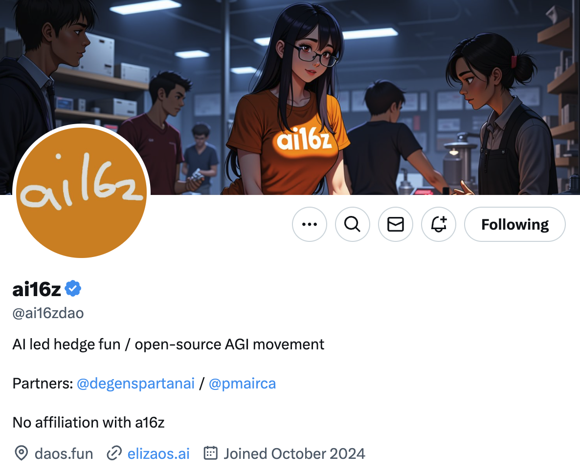 Ai16z is an AI agent-run account. Yes, it's almost entirely retweets about AI agent-related topics, but it's also one of the best spots to learn about Eliza.